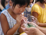 7月29日(日)吉備高原都市のきびプラザで「『夏休みの友』お楽しみ広場」を開催しました。参議院選挙の投票日でもあり、夏真っ盛りの大変に熱い一日となったこの日、たくさんの子どもたちが参加してくれました。保護者も含めて参加者は約300人。毎年大好評のエビぞうくんや万華鏡をはじめとするそれぞれのブースでは、子どもたちが熱心に製作に取り組んでいました。 子どもたちはもちろんのこと、一緒に取り組んだお父さんやお母さんの顔は、子どもたち以上に真剣そのもの。作品ができあがったときの子どもたちのキラキラとした笑顔は忘れられません。